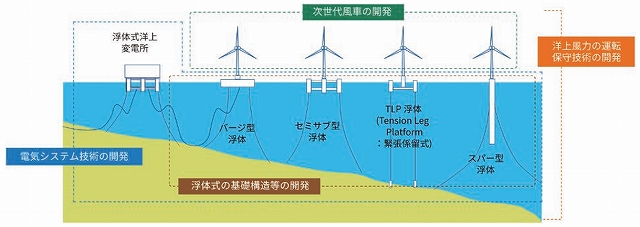 浮体式洋上風力は、風車を海底に固定せず、海洋上の浮体構造物に設置する方法で、水深の深い沖合でも設置が可能です。 国際的に開発競争が激化する中、日本が強みを持つ造船技術などの活用による量産化が期待されます。今後は、低コストでの量産化に向け、グローバル連携による最適な設計手法の開発や、サプライチェーンの構築が必要です。