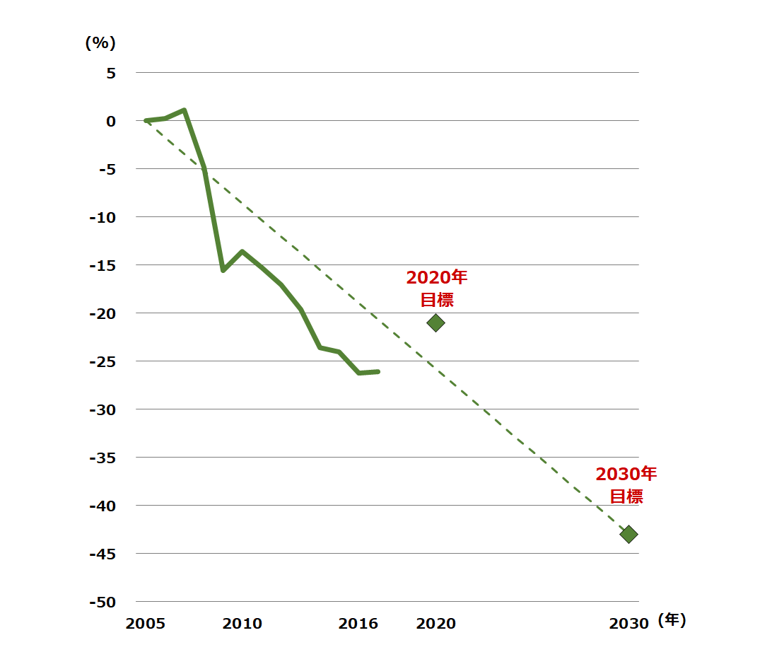 EUは、この産業に属する企業に対して、個別に排出削減目標を設定し、「欧州排出量取引指令(EU-ETS, EU Emissions Trading System)」に基づいて、EU域内の企業間で「排出権」の取引をおこなうしくみを導入しています。「排出権」とは、対象となる企業に割り当てられた排出量の上限のことで、排出権を超える量のGHGを排出した企業は、市場を通じて他の企業から排出権を買い取る必要があります。この部門の対象となる産業全体の削減目標は、2005年比で2020年に21%削減、2030年に43%削減としています。