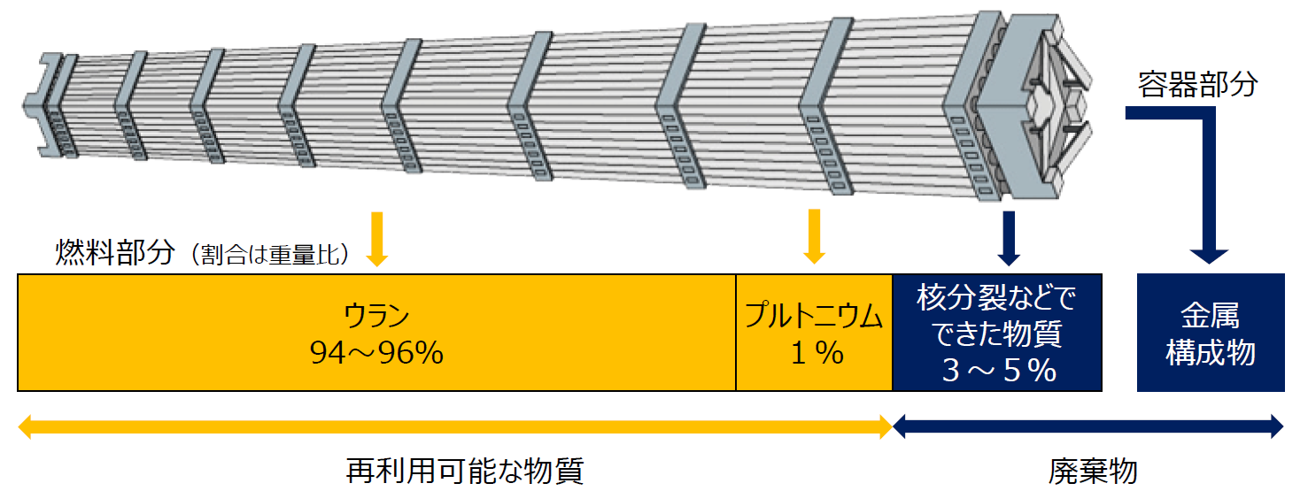 これにより、現在の「軽水炉」と呼ばれるタイプの原発における核燃料サイクルでは、使用済燃料を再処理せずに直接処分する場合と比べて、以下のことが可能になります。