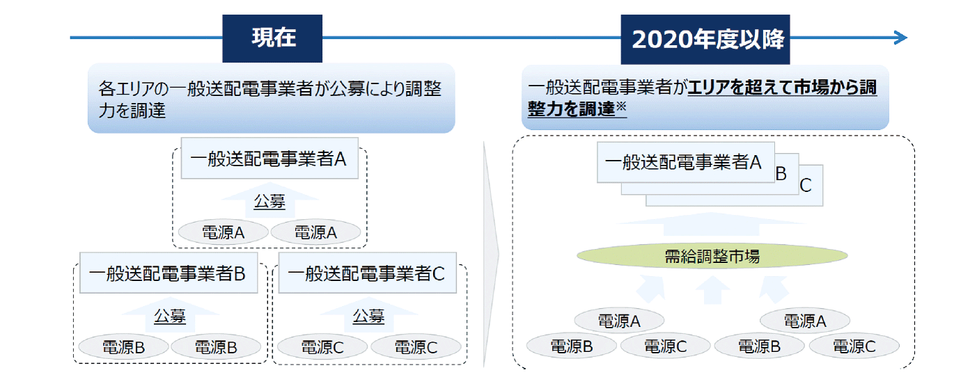 制度検討作業部会においては、こうした制約や日々の需給調整に支障を生じさせないことの重要性を認識しつつも、広域化等による需給調整の効率化や、調整力確保に係る市場メカニズムの採用による透明性の向上、DR事業者や新電力等の新規事業者を含めた形での調整力の確保といった諸課題に対応することは、2020年以降の電力システムにとって必須の課題であるとの認識の下、需給調整市場の詳細制度設計を検討していきます。