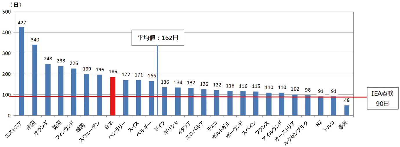 - IEA「Closing Oil Stock Levels in Days of Net Imports」を基に作成