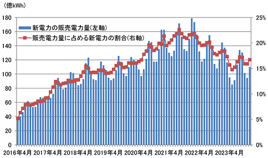 【第214-1-9】新電力の販売電力量と販売電力量に占める割合の推移