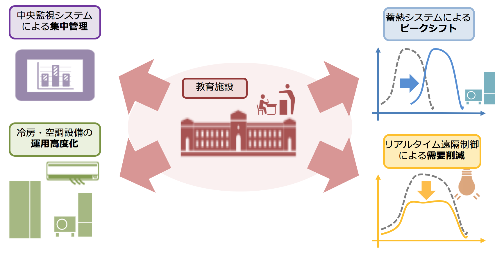 - 照明や空調のリアルタイム遠隔制御による需要削減