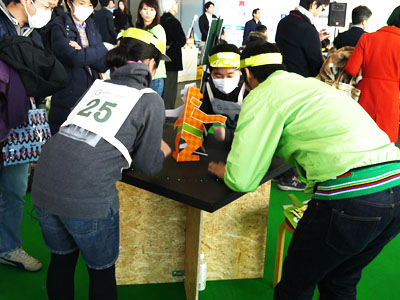 2月7日(日)、『こどもグリーンパワーサミット』が開催される会場内のステージで、「第3回 親と子のこどもエネルギークイズ選手権」の決勝大会が行われました。地方大会を勝ち抜いた7組の優勝ペアが、東京・台場「日本科学未来館」に集結。さらに、会場から最後の1組を選ぶ当日予選大会も開催され、全8組の親子ペアが難問を相手に熱戦を繰り広げました。